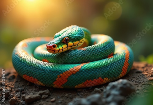 Fototapeta premium intricate close vibrant snake coiled textured surface exposing its unique...