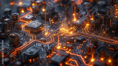© Nutthanon, Obraz premium Intricate Cutting Edge Smart Grid Network with Intelligent Power Transmission and Glowing Circuit Boards