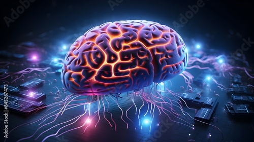 Fototapeta premium Intricate 3D Brain Showcasing Futuristic Technological Connections