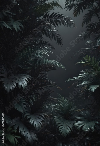 Fototapeta premium Intricate dark foliage, overlapping leaves, mysterious tropical design ,...