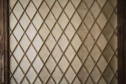 © Gilang, Naklejka premium Intricate diamond patterned wall panel with wooden framing texture detail
