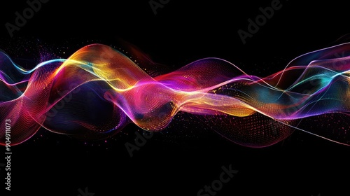 Fototapeta premium Intricate digital wave pattern with bright highlights on a black background.