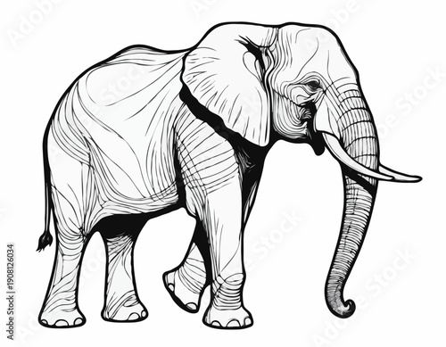 Fototapeta premium Intricate Elephant Line Drawing