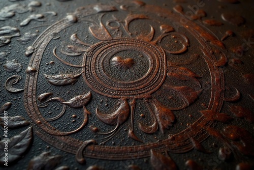 Naklejka premium Intricate embossed leather, dark brown, rich detail, illustration, backdrop