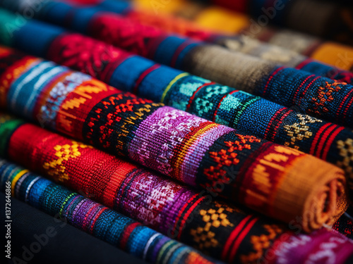 © Llama-World-studio, Fototapeta premium Intricate Filipino textile pattern weaving colorful threads showcasing tradition and bright colors