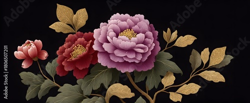 © ckybe, Naklejka premium Intricate floral patterns embody the spirit of asian nature-inspired design.