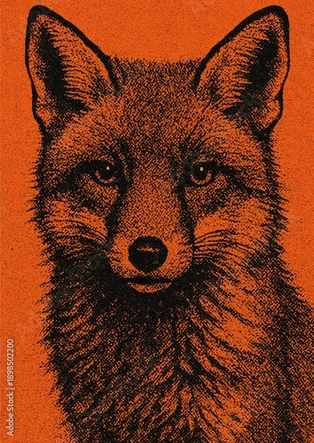 © Rawpixel.com, Fototapeta premium Intricate fox illustration on orange