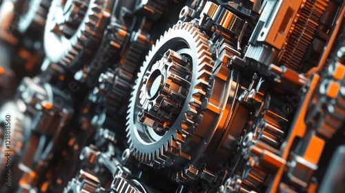 © LILI_COLLECTIONS, Fototapeta premium Intricate Gear System Close-Up. Industrial Machine Mechanics