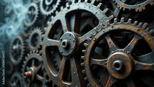 Obraz premium Intricate Gears and Cogs in Mechanical System