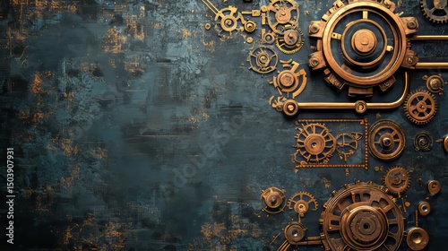 Naklejka premium Intricate gears and steampunk machinery on a dark, textured background