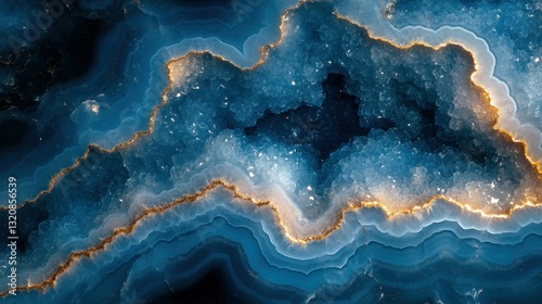 Fototapeta premium Intricate geological patterns of deep blue and golden agate. Detailed crystal veins and layers create a mesmerizing design