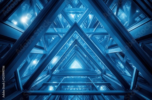 Fototapeta premium Intricate Geometric Architecture of a Modern Skylight with Blue Tones and...