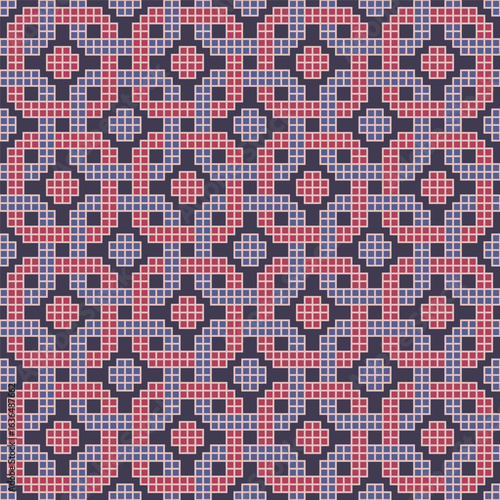 Fototapeta premium Intricate Geometric Cross Stitch Pattern in Red and Purple Colors