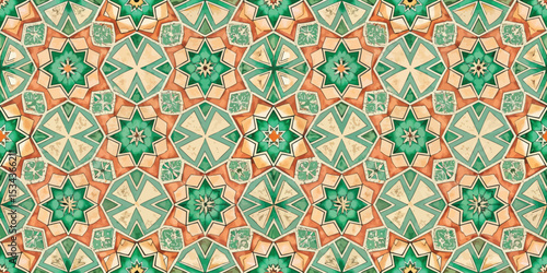 © Skyqun, Fototapeta premium Intricate geometric pattern featuring vibrant teal and earthy tones.