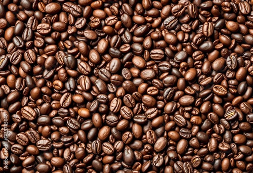 Fototapeta premium Intricate geometric pattern formed by coffee beans, arrangement, repetition