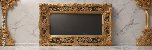 Obraz premium Intricate gold floral frame on polished marble Luxury, elegant backdrop ,...