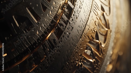 Fototapeta premium Intricate Golden and Black Metallic Sphere: A Close-Up View of Complex...