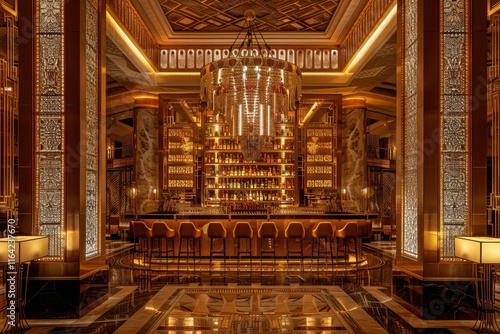 © JHONDOMINIC, Obraz premium Intricate Golden Art Deco Interior with Elegant Lighting Design