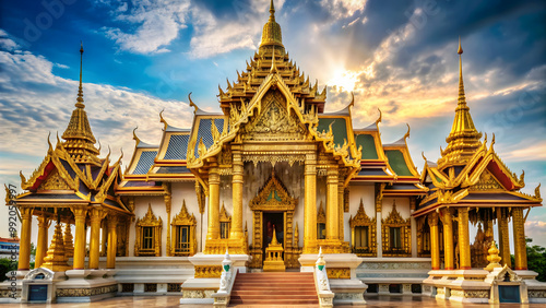 © suwatthana, Fototapeta premium Intricate golden temple with ornate decorations in Bangkok, Thailand, Temple, Emerald Buddha, Thailand, Bangkok
