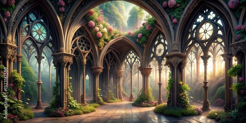© Watcharapon, Fototapeta premium intricate gothic arches with entwined vines and flowers, intricate patterns, mysterious, intricate patterns