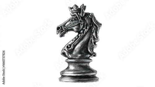 Obraz premium Intricate grayscale knight chess piece with crown, detailed shading