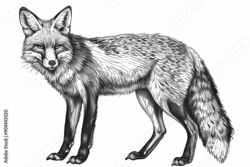 Fototapeta premium Intricate Hand-Drawn Fox Engraving: Black and White Ink Sketch