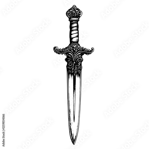 Obraz premium Intricate hand-drawn vector illustration of an ornate dagger with a decorative handle and blade