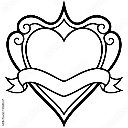 Fototapeta premium Intricate Heart Banner in Line Art Style