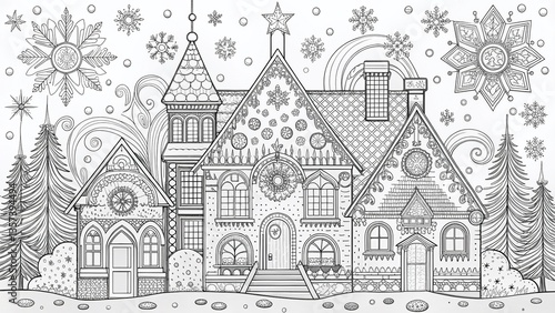 © Sirinporn, Obraz premium Intricate Holiday Ornament Architecture Coloring Page for Adults