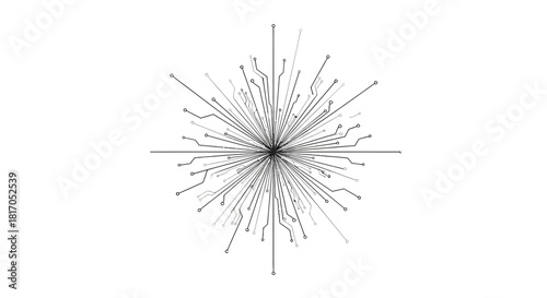 Obraz premium Intricate illustration of a central point with radiating lines and circuit-like patterns.