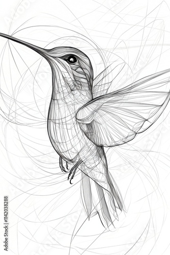 Naklejka premium Intricate line art of a hummingbird in flight, showcasing elegant wings and a...