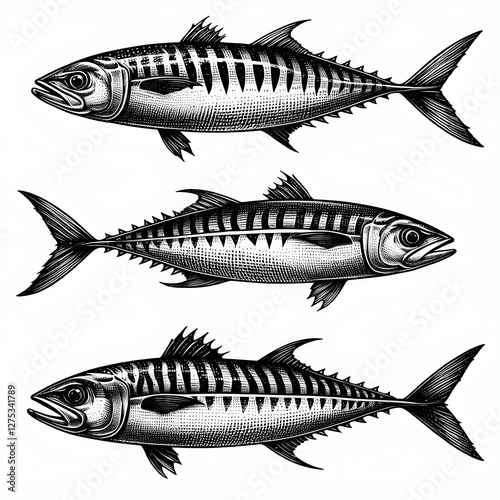 Fototapeta premium Intricate line work and realistic texture of mackerel fish, isolated on white...