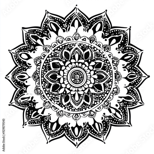 © Chromic whisper, Fototapeta premium Intricate Mandala Pattern: Black and White Ornamental Design