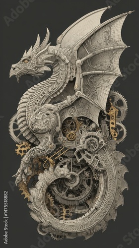 Fototapeta premium Intricate, mechanical dragon sculpture design.