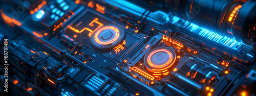 Fototapeta premium Intricate Mechanical Gear with Futuristic Lighting