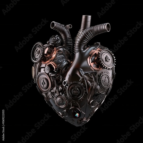 Obraz premium Intricate mechanical heart made of gears and tubes