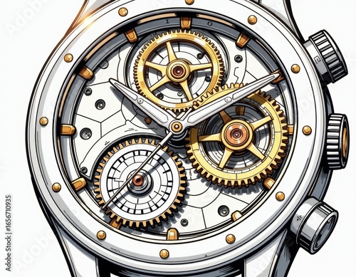 © NAVA, Fototapeta premium Intricate Mechanical Watch Movement with Visible Gears and Cogs