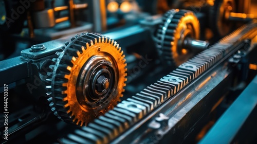 Fototapeta premium Intricate mechanism featuring gear wheels and cogged rack for sophisticated...