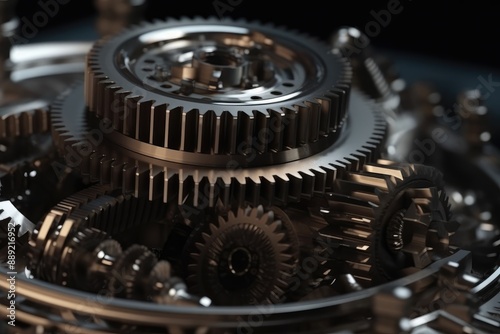 © evening_tao, Fototapeta premium Intricate Metal Gears in Motion