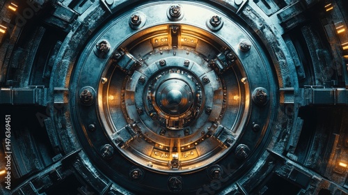 © ShakkBbo9495, Fototapeta premium Intricate, metallic, circular, futuristic, mechanical design.