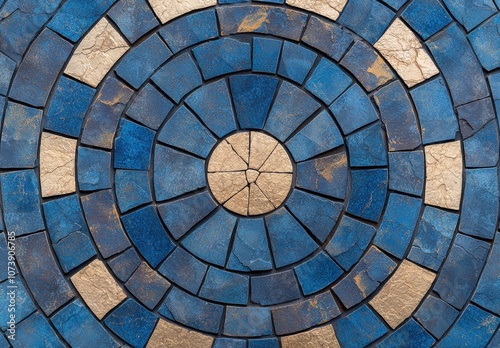 Fototapeta premium Intricate mosaic tile pattern with blue and gold colors