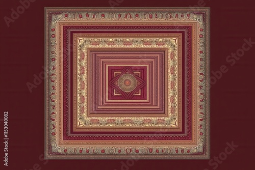 © Feri, Obraz premium Intricate Nested Frames Digital Art: A Symphony of Red and Gold Hues