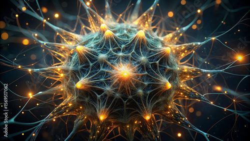 Obraz premium Intricate Neural Network Visualization Sparkling with Light and Shadow A...
