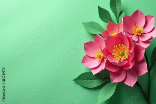 © prachaya, Fototapeta premium Intricate paper flower bouquet, soft green background, bouquet, design