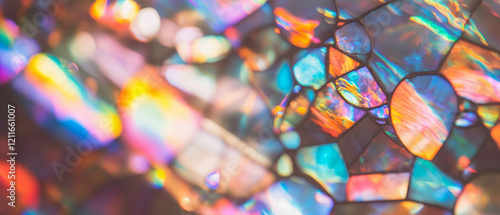 Naklejka premium Intricate patterns of rainbow stained glass create a captivating abstract...
