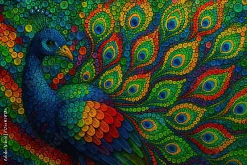 Obraz premium Intricate peacock art with vibrant colors, meticulously crafted with dot...
