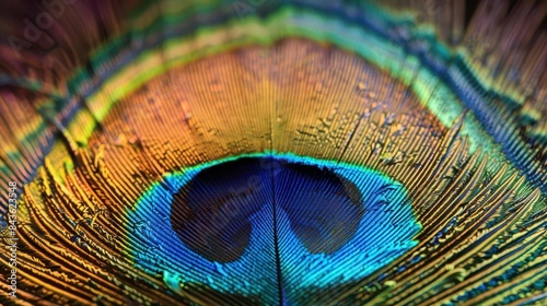 Naklejka premium intricate peacock feather closeup vibrant iridescent colors nature photography