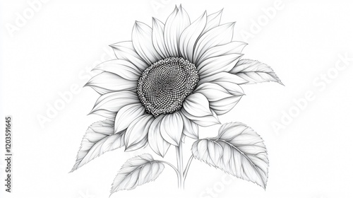 Fototapeta premium Intricate pencil sketch of a sunflower with detailed linework and shading