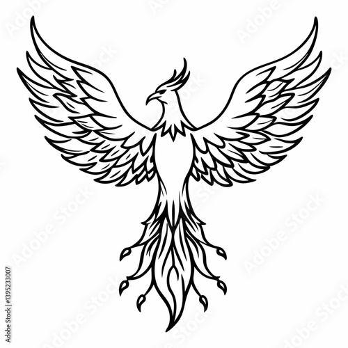 Fototapeta premium Intricate Phoenix Line Art Illustration for Tattoo Designs and Mythical Themes