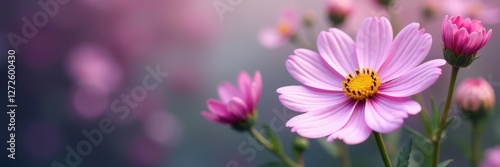 © Theerawat, Fototapeta premium Intricate purple and white cosmos arrangement, blurred floral backdrop, soft, flower